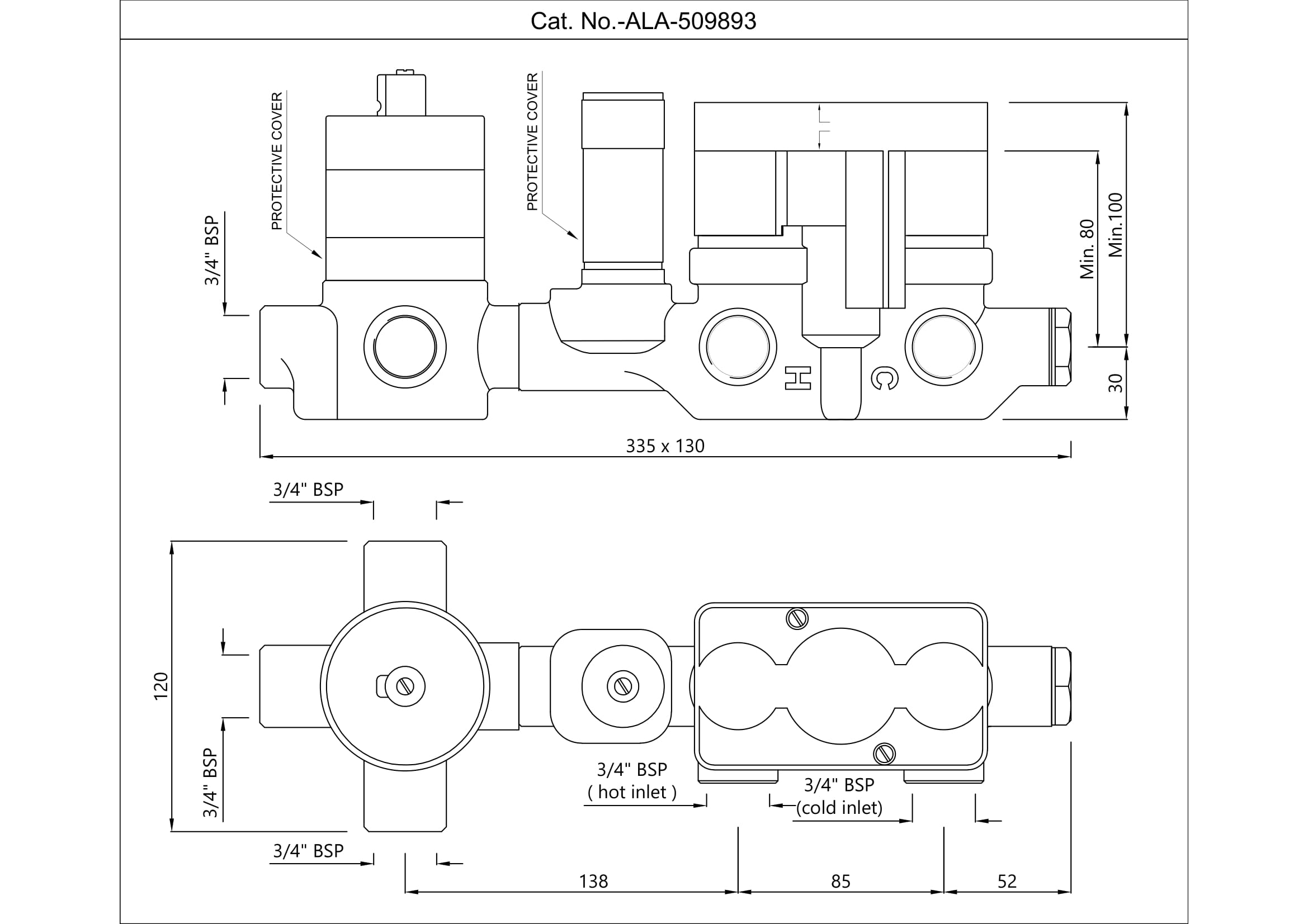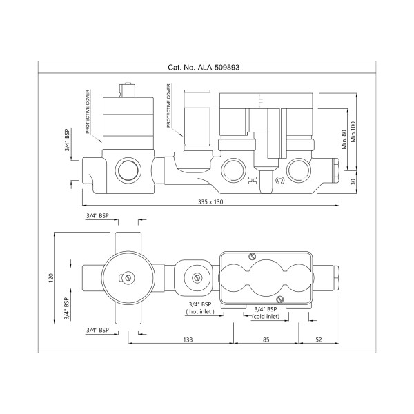 Description:  In-wall Body of Thermostatic Shower Mixer with 3-Way Diverter (Without Exposed Parts)