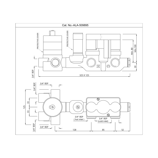 Description:  In-wall Body of Thermostatic Shower Mixer with 4-way diverter (Without Exposed Parts)