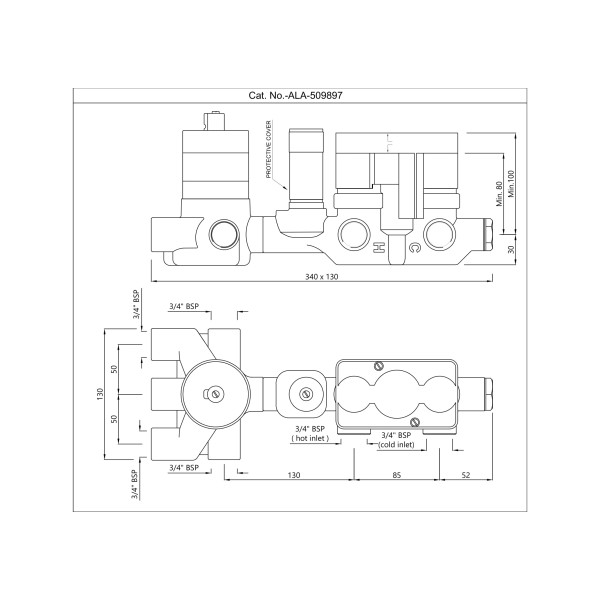 Description:  In-wall Body of Thermostatic Shower Mixer with 5-way diverter (Without Exposed Parts)