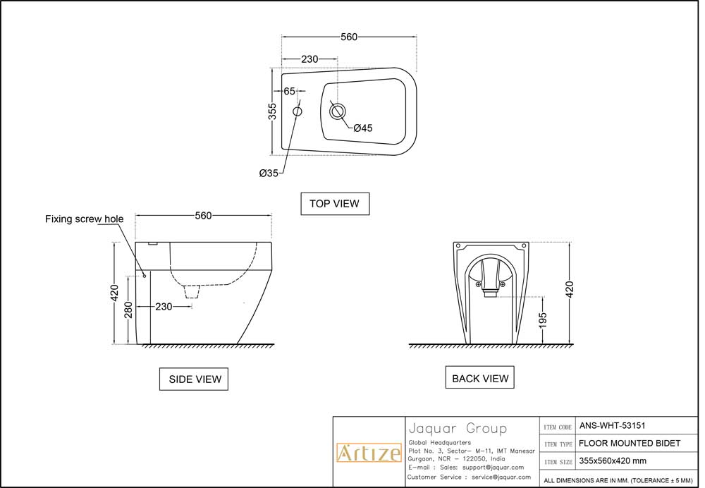 • Jaquar reserves the right at its sole discretion, to change/modify/alter any product specification at any time without notice, where improvement can be effected in design, development and dimensions.