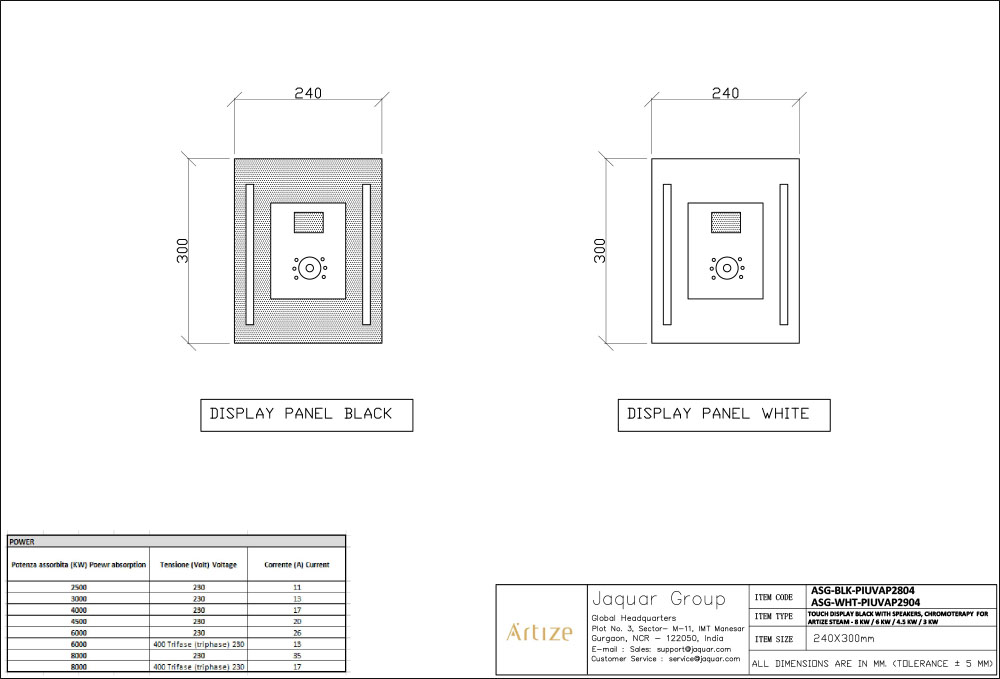 <p>Touch Display 300x240mm black with speakers, chromotherapy for Artize Steam - 8 kw / 6 kw / 4.5 kw / 3 kw</p><p><b>ASG-CHR-PIUVAP2905</b></p><p>Metal Box for display 300x240mm for Artize Steam - 8 kw / 6 k