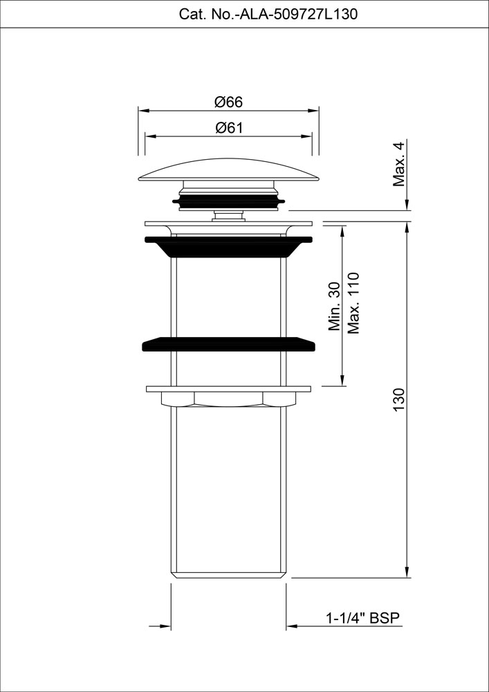 Click Clack Basin Waste with 130mm Height, UnSlotted