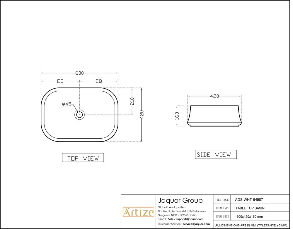 • Jaquar reserves the right at its sole discretion, to change/modify/alter any product specification at any time without notice, where improvement can be effected in design, development and dimensions.