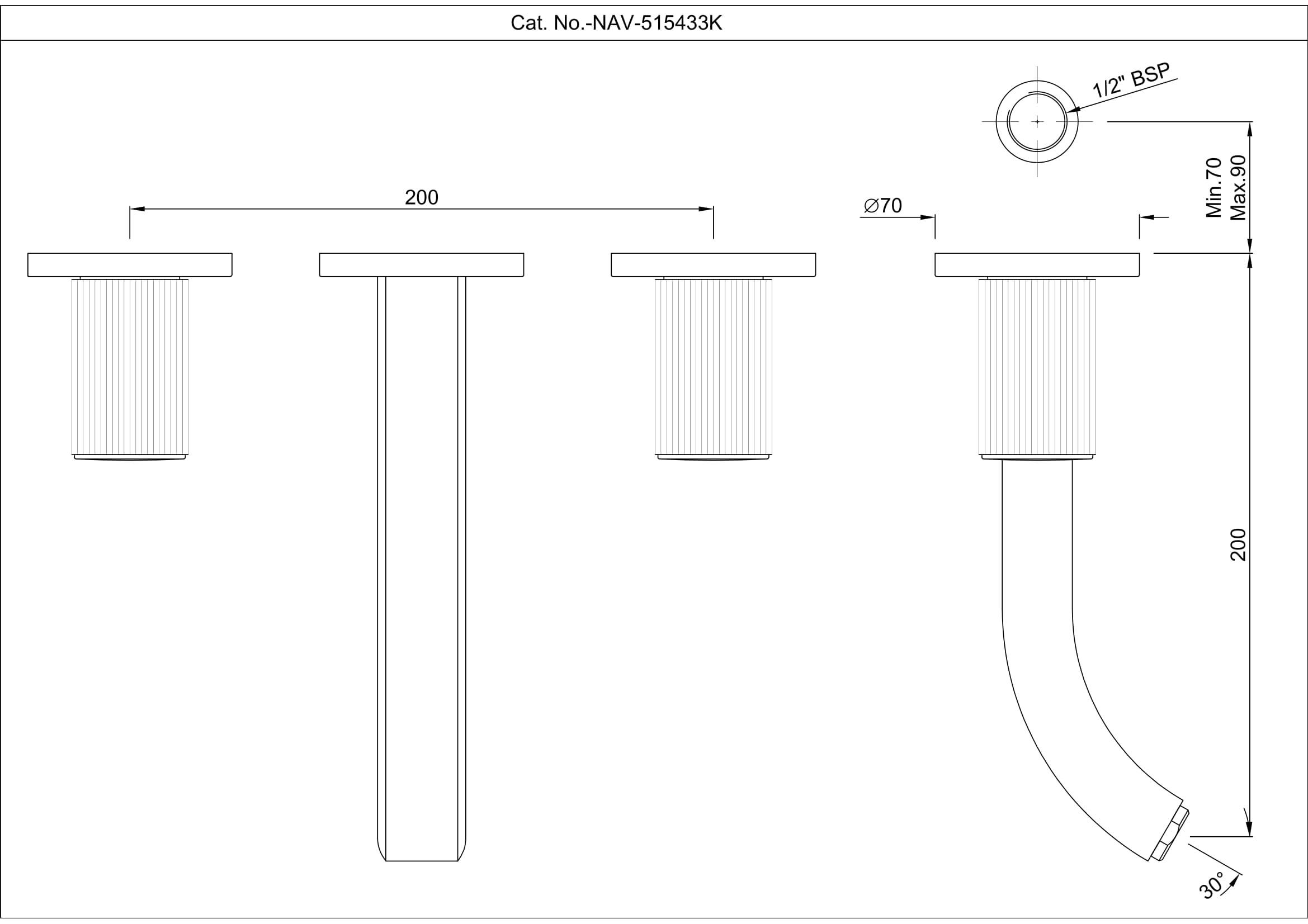 Exposed Part Kit of In-wall 3-Hole Basin Mixer with Basin Spout (Compatible In-wall part NAV-515433C is sold separately)