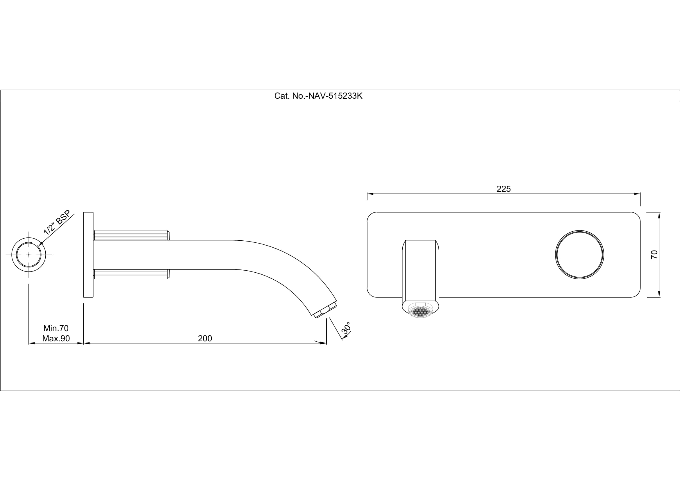 Exposed Part Kit of Basin Mixer Wall Mounted Consisting of Operating Knob, Wall Flange, Nipple & Spout (Compatible concealed part NAV-515231C is sold separately)