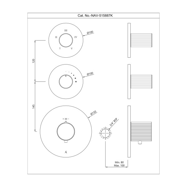 Description: Exposed Part Kit of Thermostatic Shower Mixer with 5-way diverter, Round Flanges (Compatible In-wall Part ALA-509887 is sold separately)