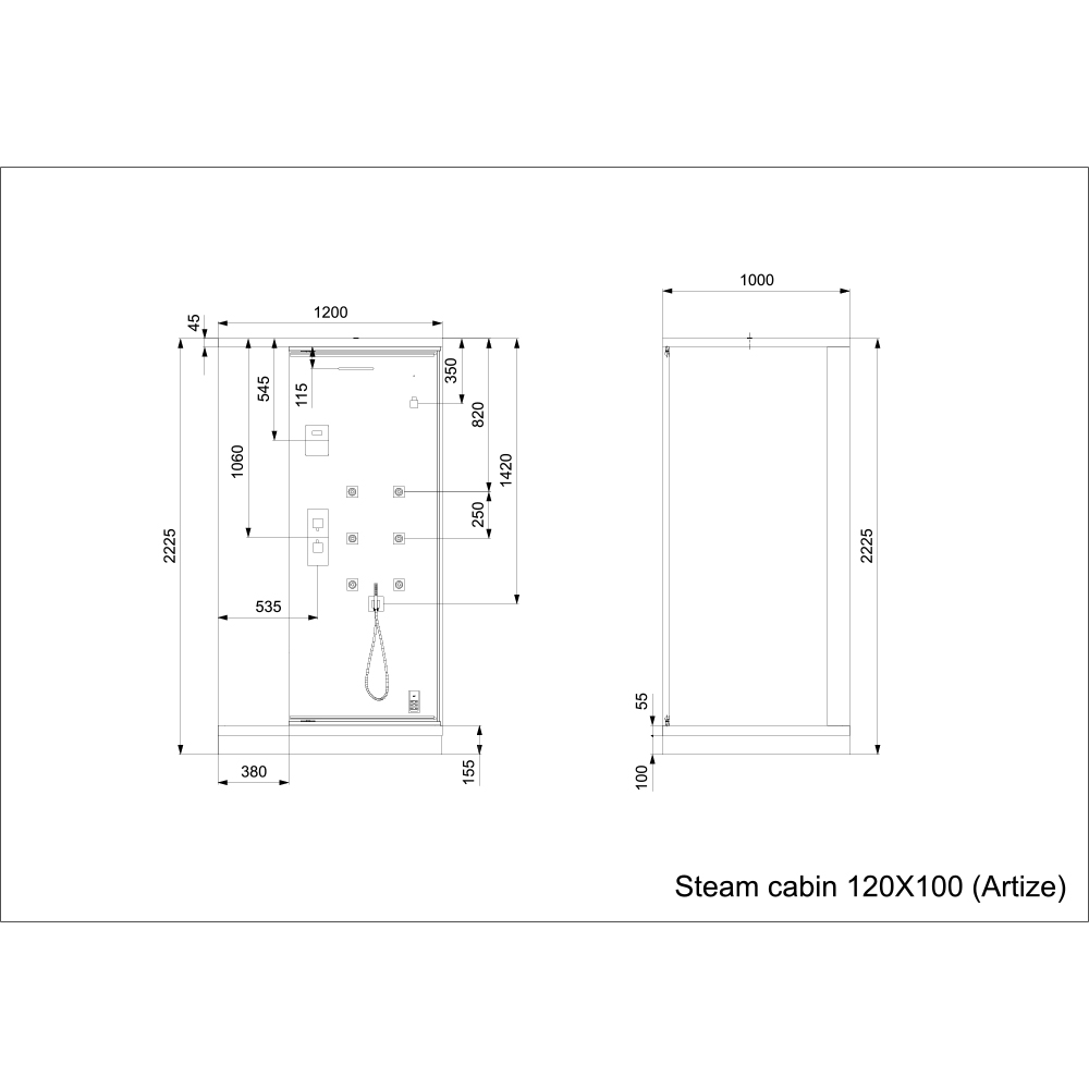 Quadro Steam Cabin - Rectangle 1200x1000x2225mm With 4.5 Kw Steam Generator