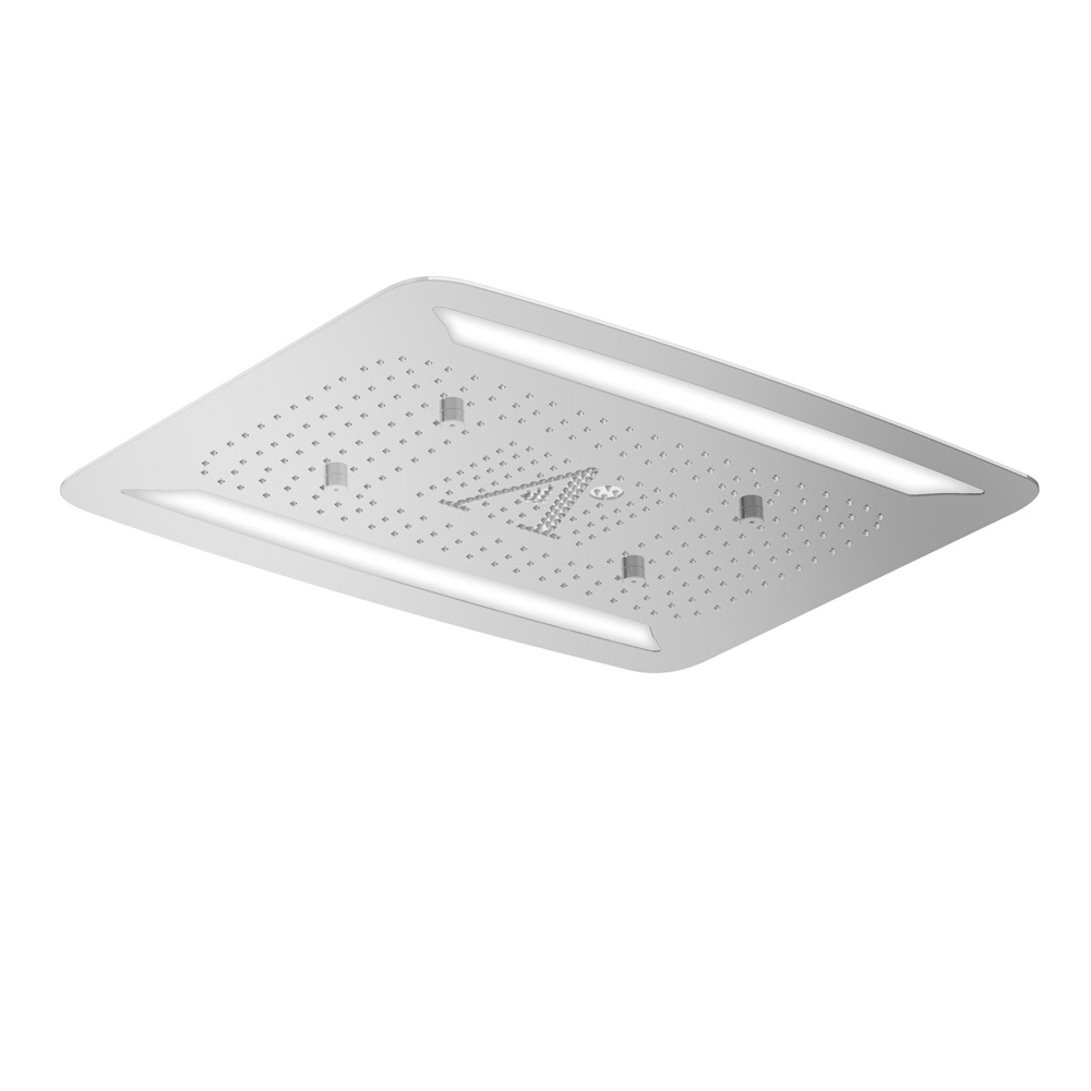 Description: Rainjoy 600X472mm AISI 304 stainless steel with RGB LED lights remote control & with installation kit for false ceiling