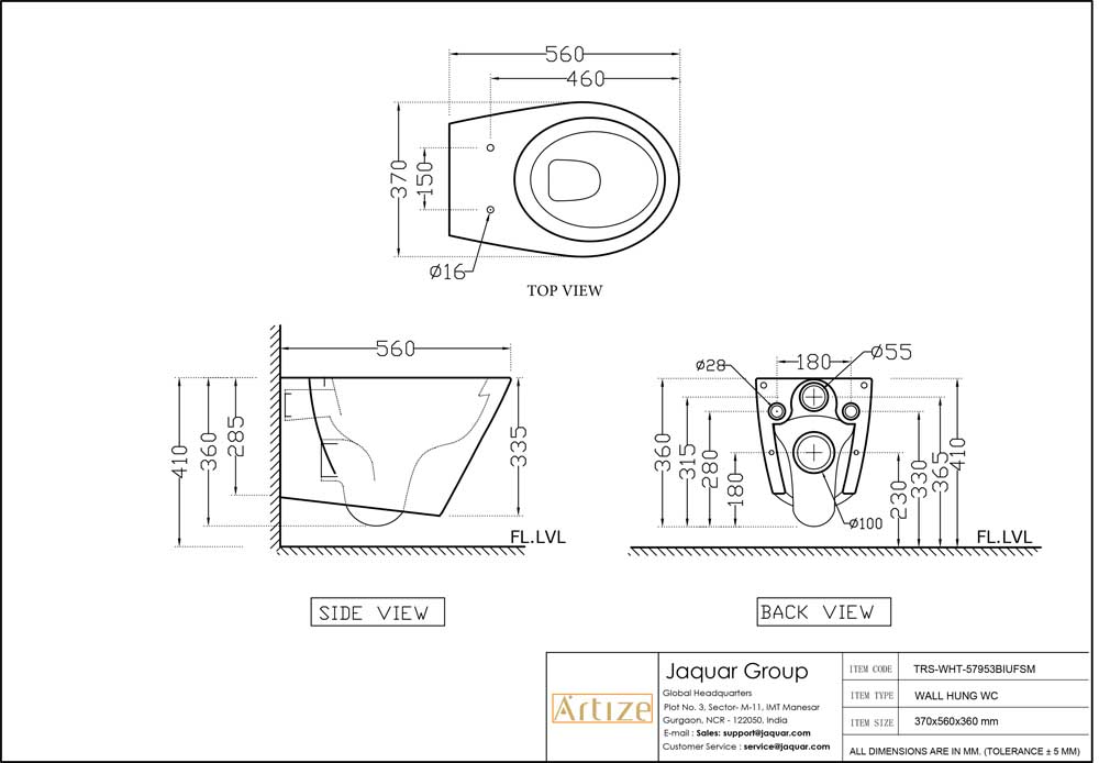 Rimless Wall Hung WC With UF Soft Close Slim Seat Cover, Hinges, Accessories Set, Size: 370x560x360 mm