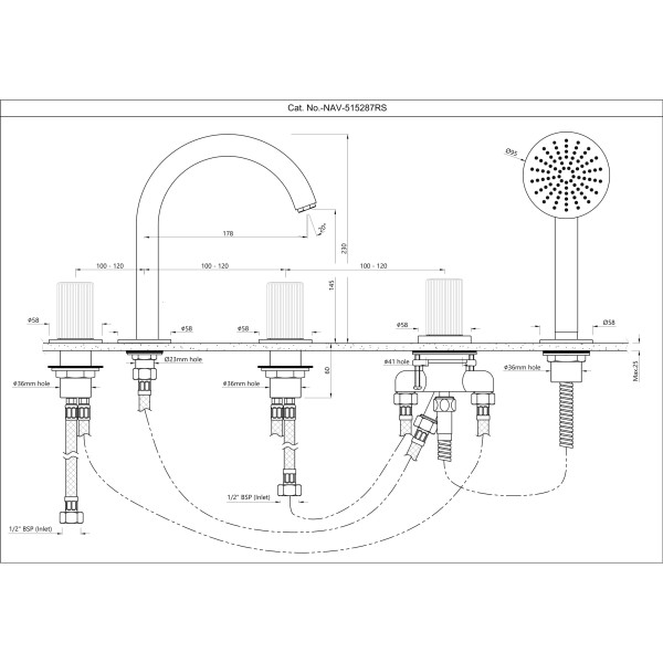 Description:  5-Hole Bath & Shower Mixer with Round Spout, Deck Mounted