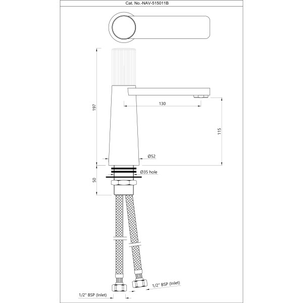 Description:  Basin Mixer without Popup Waste With 375mm Long Braided Hoses