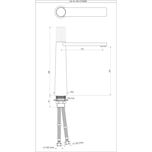 Description:  High Neck Basin Mixer without Popup Waste with 450mm Long Braided Hoses