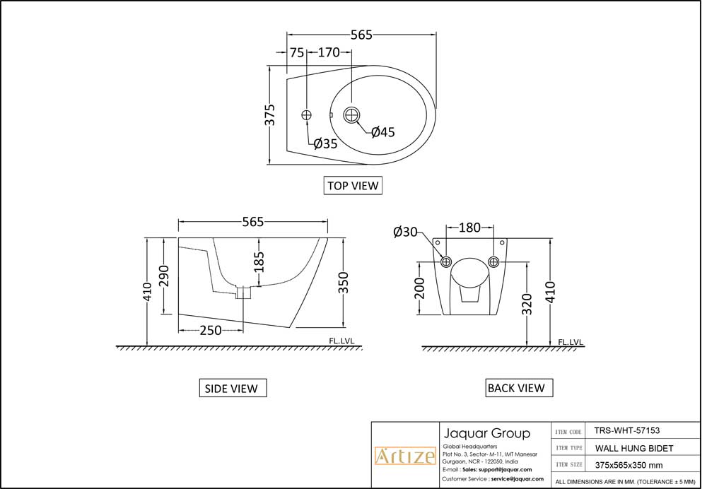 Blind Installation Wall Hung Bidet With Accessories Set, Size: 375x565x350 mm